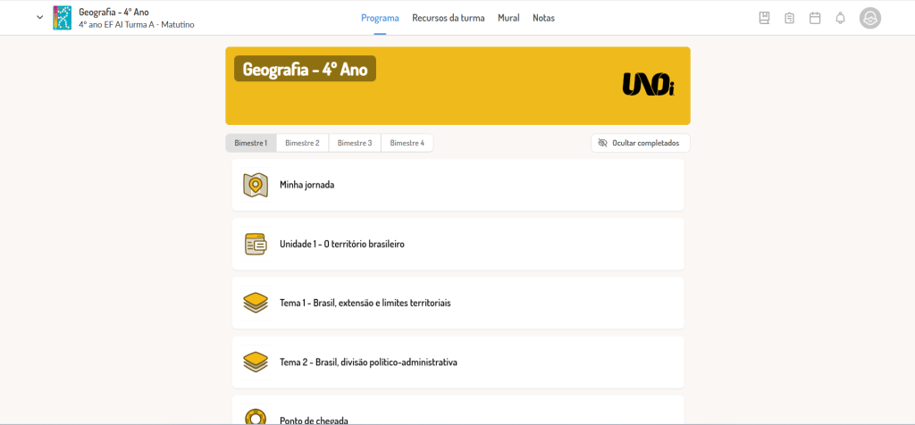 Utilização exclusiva dos conteúdos do material UNOi adotado pela escola, garantindo: